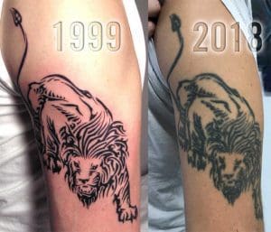 משמאל: ביום הקעקוע , מימין: אחרי החלמה.